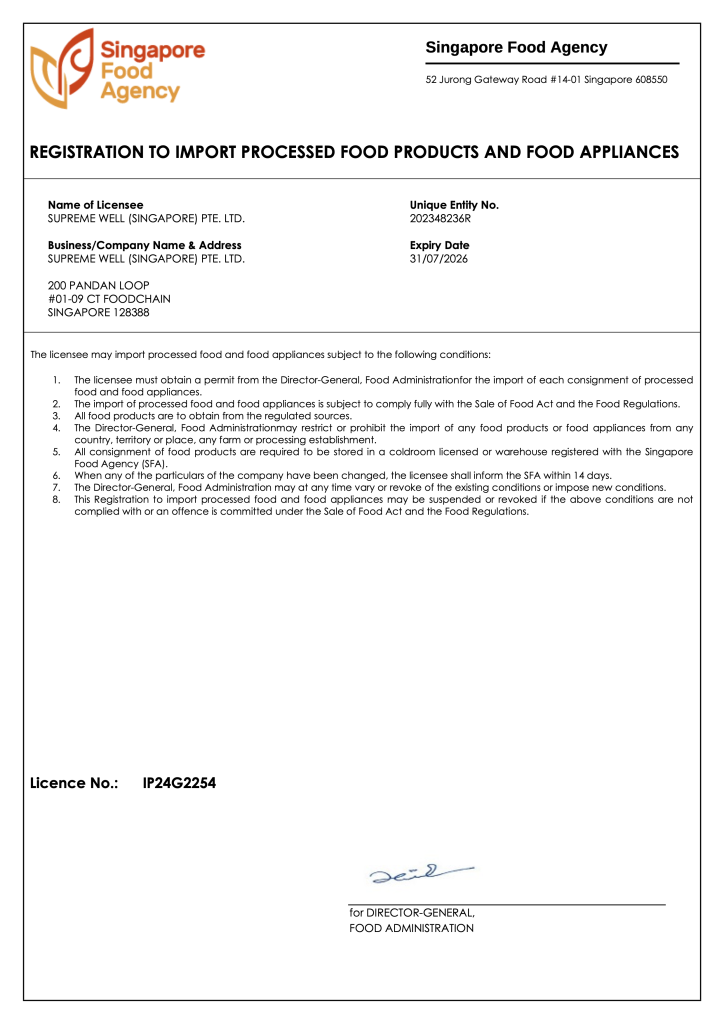 Supreme Well (Singapore) Pte. Ltd. harnesses the wisdom of the Chinese and draws inspiration from Western management practices. Established and developed in the highly prosperous and culturally diverse region of Singapore, our company has evolved into a comprehensive service enterprise integrating international trade, procurement agency, import customs clearance, cold chain warehousing logistics, and supply chain financial services.